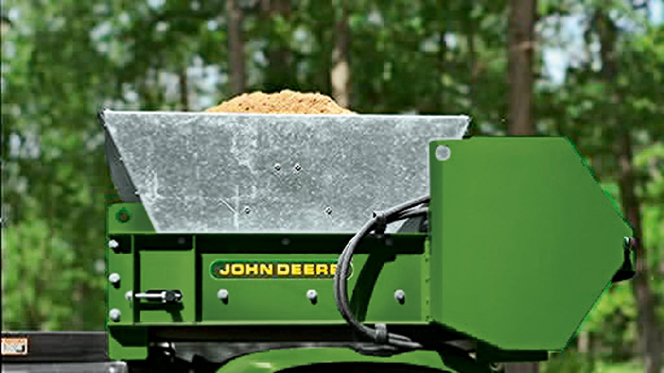 TD100, gübre serpmeyi kolay ve isabetli hale getirir. Anma kapasitesi: 680 kg/1500 lb; yayma genişliği: 142 cm/56 inç.