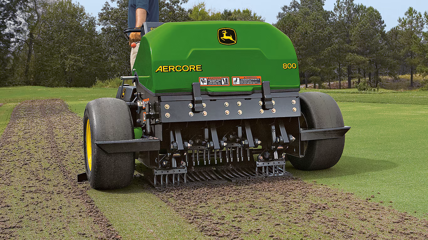 John Deere Aercore 800 Havalandırıcı, golf sahası ve spor sahası çiminde doğru seçimdir. Flexi-Link maçalama sistemi, V-kayışı tahrik tasarımı ve contalı yataklar sayesinde uzun yıllar çalışmayı sürdürür.