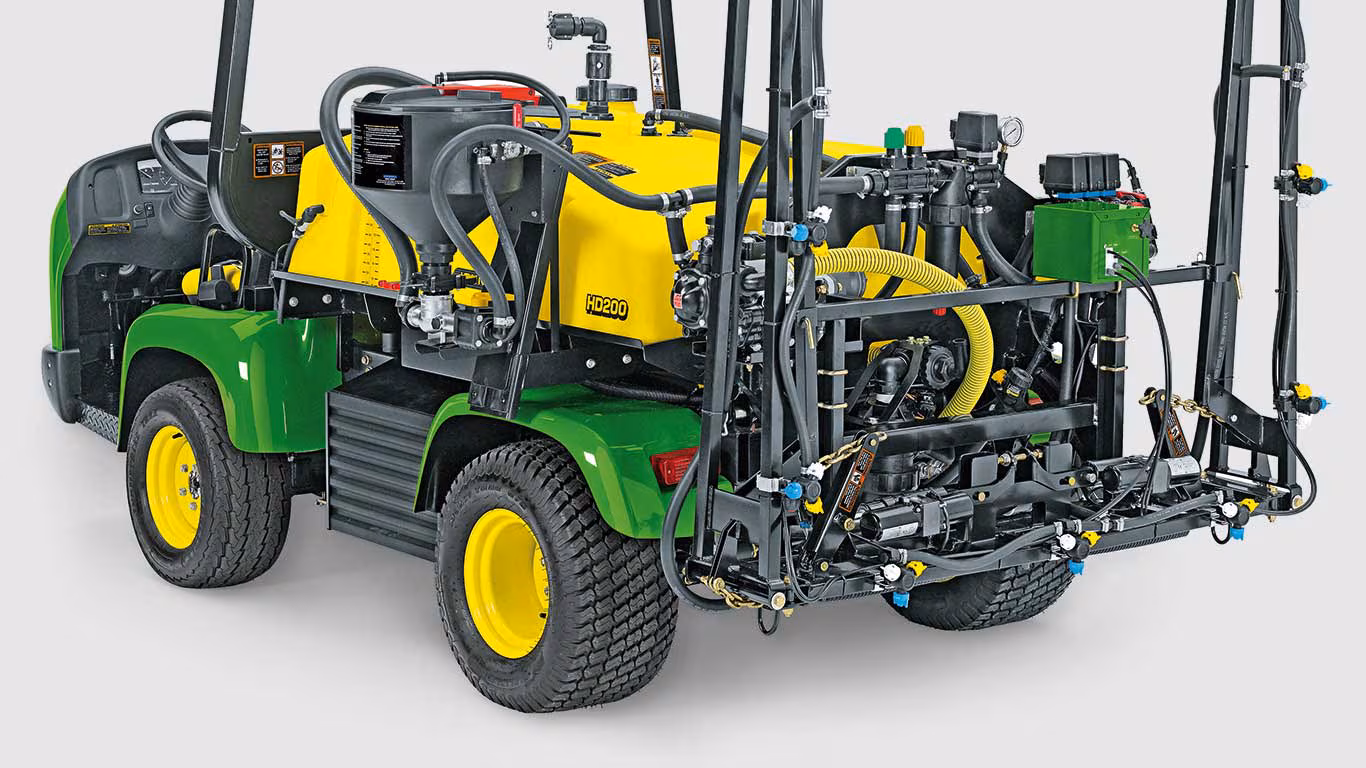 Suyu akışına bırakın: HD200 ilaçlama makinesinin 750 litrelik kapasitesi ve çeşitli ilaçlama kolu seçenekleri ile artık bu çok kolay. HD200, kendinden ilaçlamalı çözüm için John Deere ProGator ile birlikte kullanılacak şekilde tasarlandı.