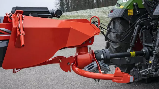 GYRODINE döner başlık sağlamdır ve PTO tahrik hattını düz tutarken 90°'nin üzerinde dönüşlere olanak tanır. Tek bir yağ değişim noktası sayesinde bakım gereksinimleri düşüktür. Makine, traktöre dönme önleyici pimlerle bağlanmıştır. Bu bağlantı sistemi son derece güvenilirdir ve güvenli manevralar sağlar.